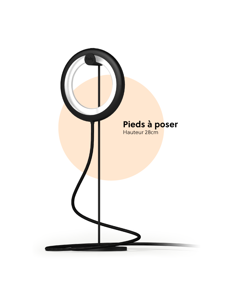 Le pieds à poser est en métal noir et mesure 28 cm de hauteur.